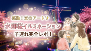 この記事はこんな人におすすめ!水郷桜イルミネーションの雰囲気や見どころを知りたい子どもと一緒にステキなイルミネーションを楽しみたい駐車場情報を知りたい高さ25m・羽直径20mのオランダ型風車のイルミネーションを中心に、「桜」「土浦の花火」「...