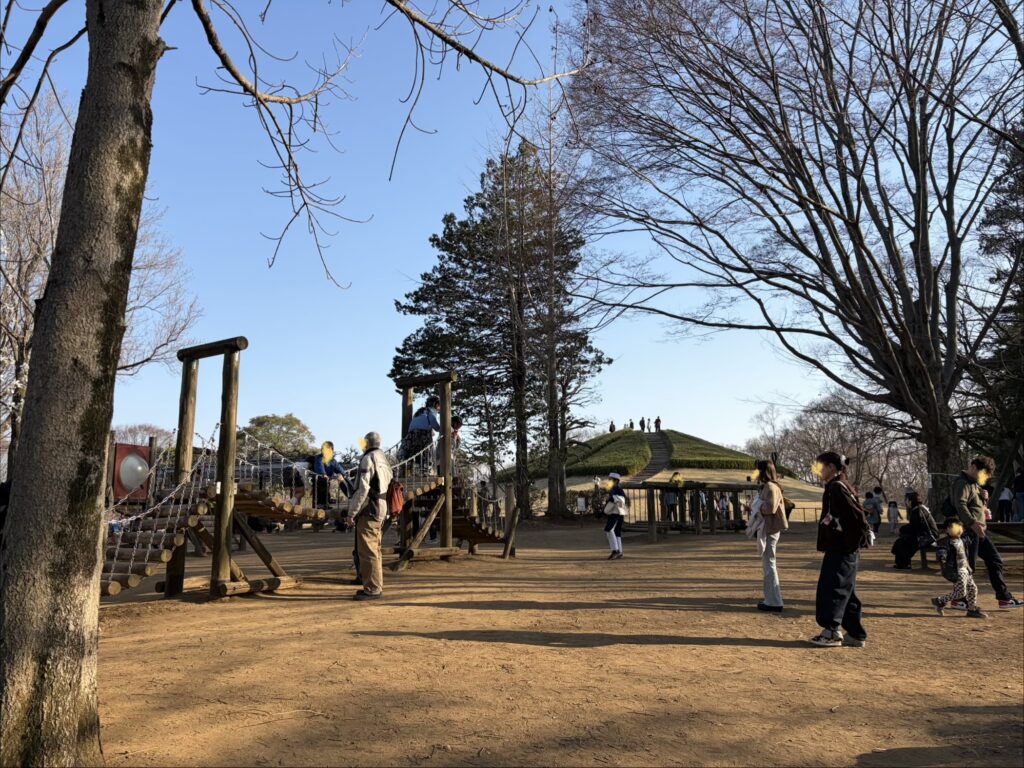お花見に飽きても大丈夫!園内には子供が大はしゃぎできる遊具エリアがあります。 大きなアスレチックは3歳以上向けかな?という印象ですが、小さい子向けのブランコもあるので、1歳の娘も楽しめました。
